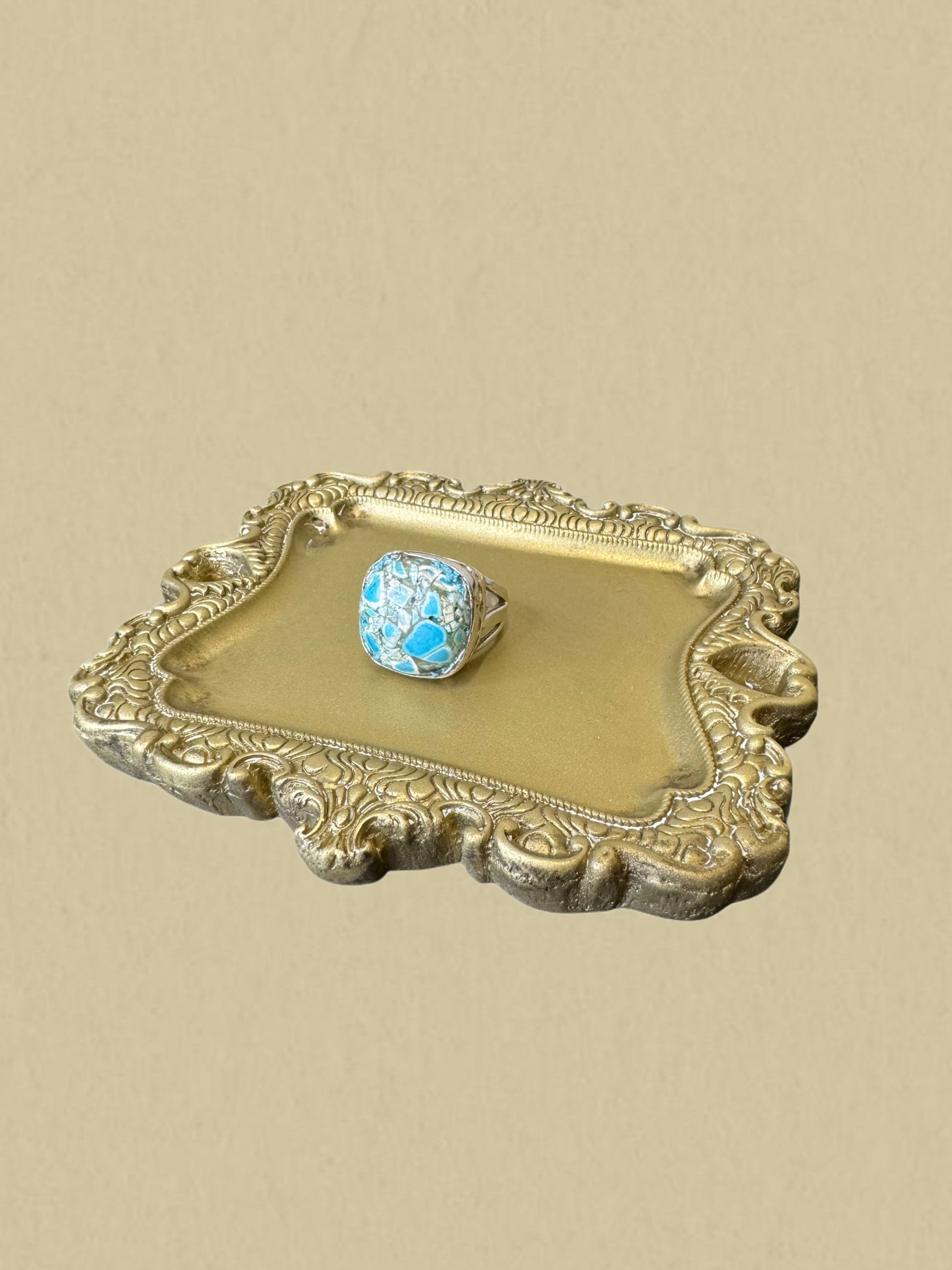 Ring aus Silber mit türkisfarbener Steinmosaik-Optik