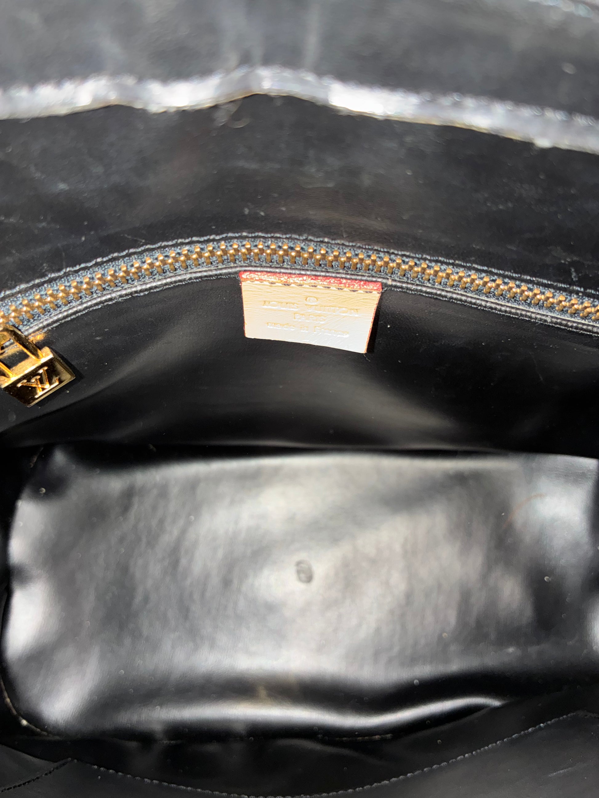 Diese edle Louis Vuitton Vernis Handtasche vereint luxuriöses Design mit klassischer Eleganz. Das glänzende schwarze Vernis-Lackleder ist mit dem ikonischen LV-Monogramm-Relief geprägt und strahlt dezente Raffinesse aus.