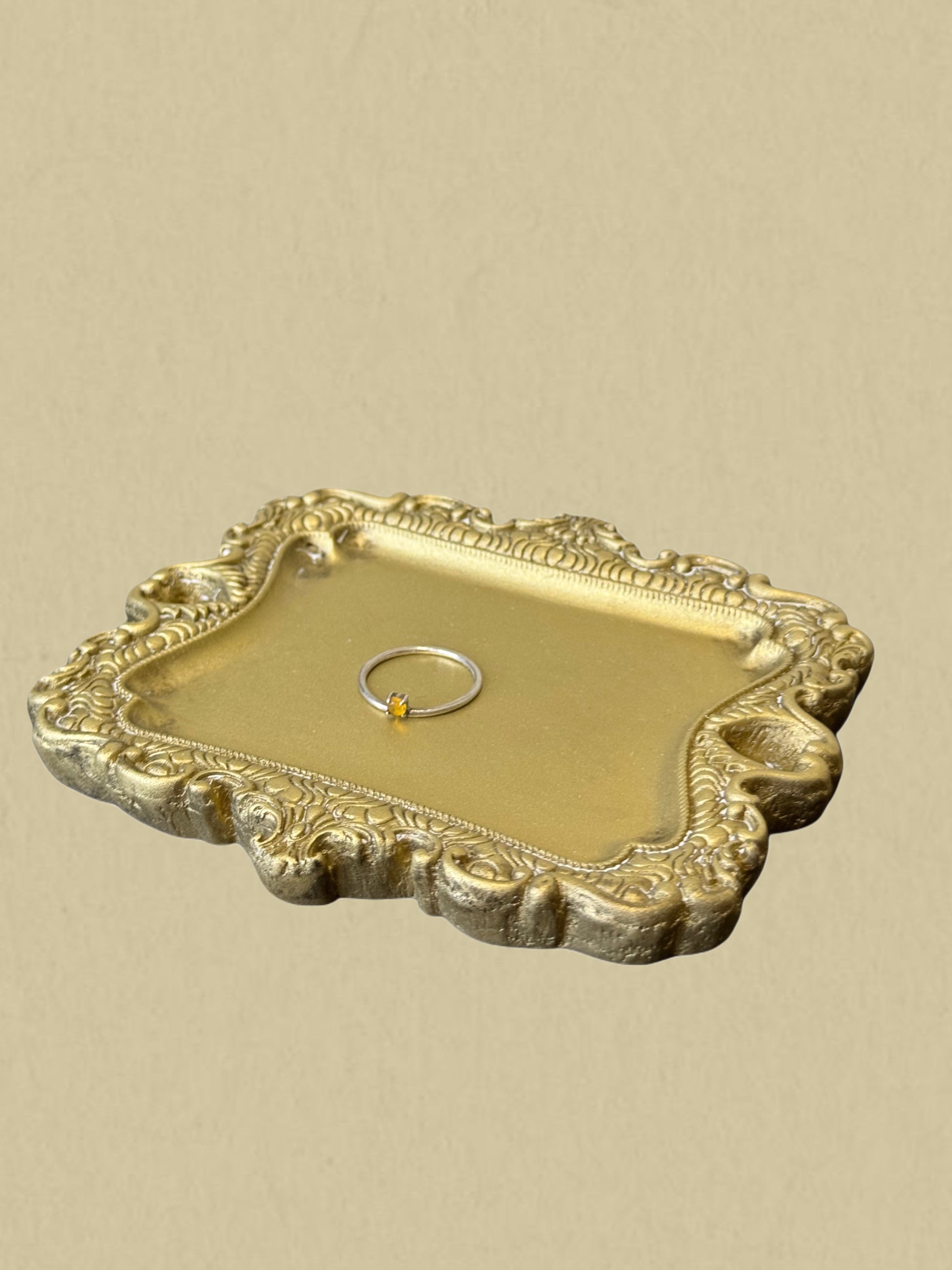Schlichter, eleganter Ring aus Silber mit einem kleinen, rund facettierten gelben Stein als Blickfang. Das minimalistische Design macht ihn ideal zum Kombinieren oder als dezentes Einzelstück im Alltag.