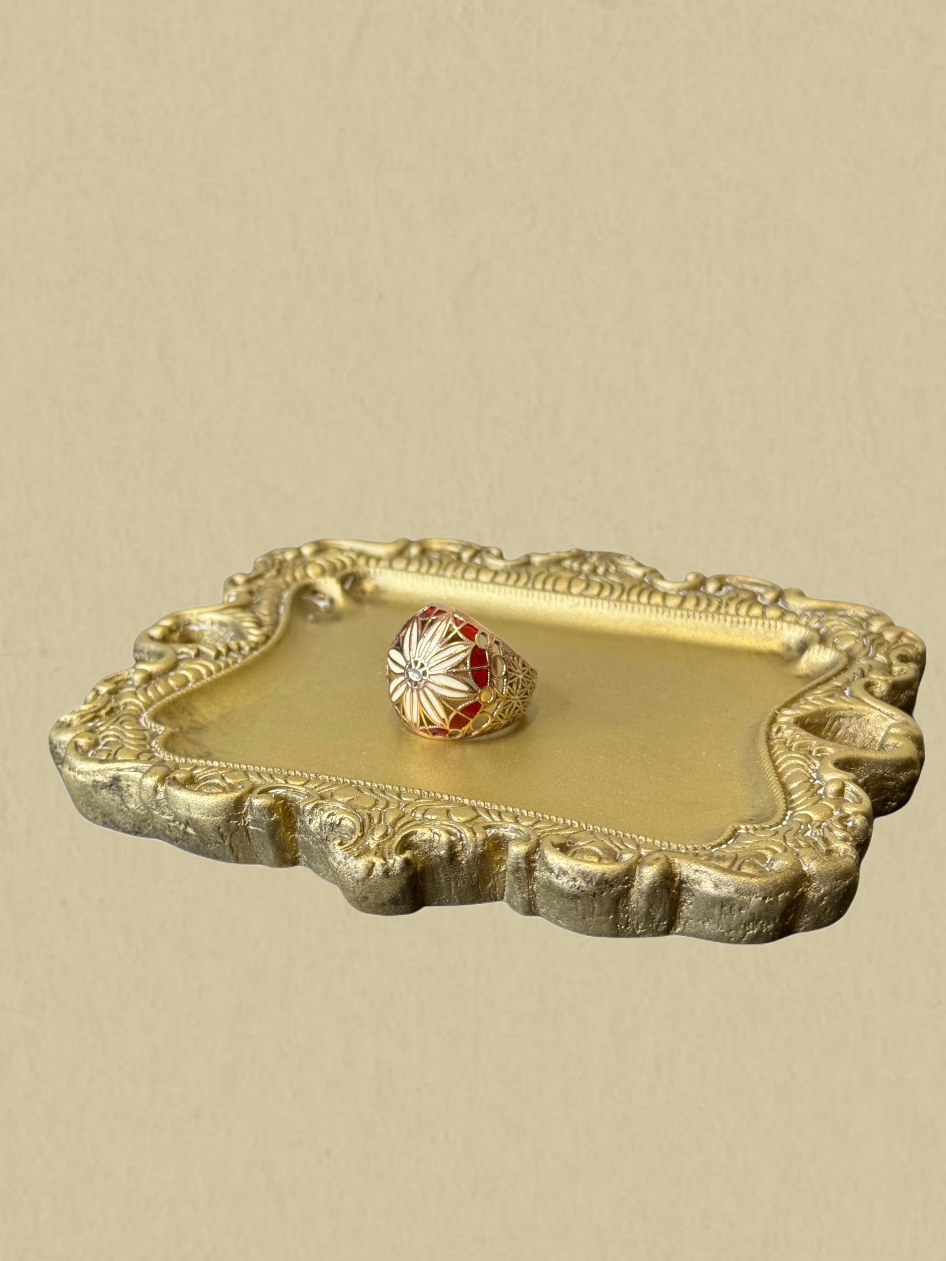 Vintage Silberring mit rosegoldenemEmaille & Blumenmotiv