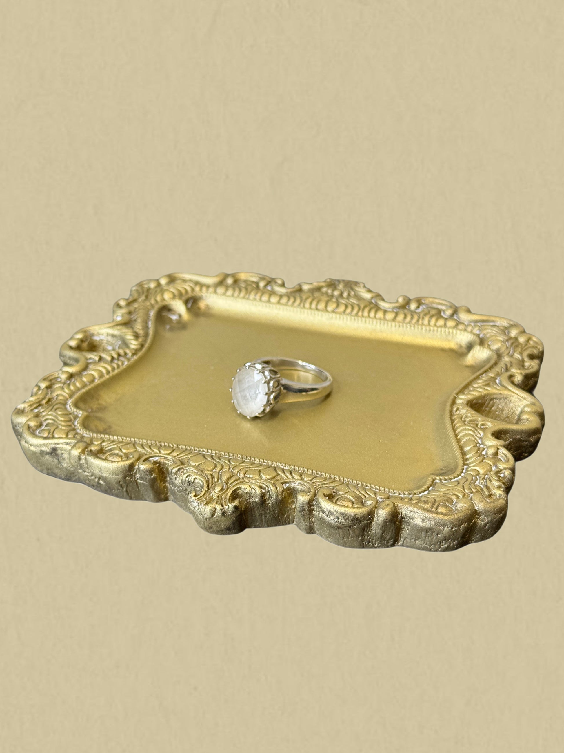 Ein eleganter Statement-Ring aus echtem 925er Silber. Der grosse, oval geschliffene Stein in zartem Weiss schimmert je nach Lichteinfall dezent und wirkt besonders edel. Die Fassung ist schlicht gehalten und lässt den Stein im Mittelpunkt stehen – ideal für alle, die schlichte Eleganz mit einem Hauch von Vintage lieben.